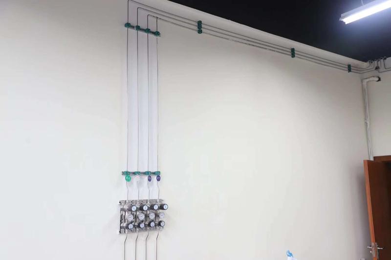 每种气体都要有主供和备供气瓶,并安装自动切换面板进行供气控制,保证不间断供气。另外主要的控制阀门和减压阀门都应安装在实验室外。